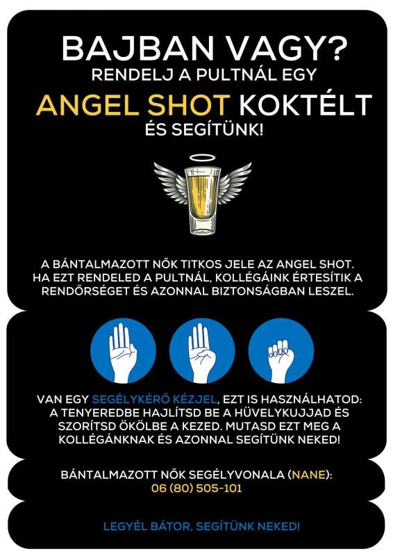 Szülőként beszéljük meg gyermekünkkel, hogyan tudja használni a Néma segítségkérés kézjelet és mit jelent az Angel Shot koktél. Reméljük, egyre több helyen kerül majd fel az itallapra Magyarországos is!